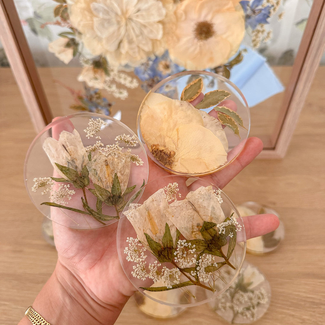 As Bases de Copos em Resina laBonacia transformam as flores do vosso bouquet em pequenas...
