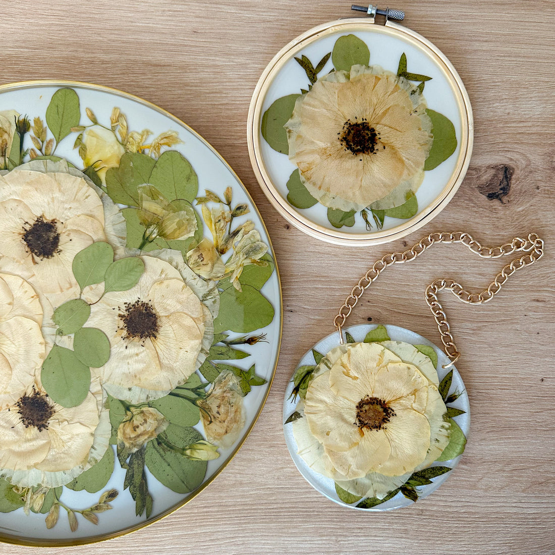Cada porta‑chave nasce de flores que guardam histórias. A flor é delicadamente montada dentro de...