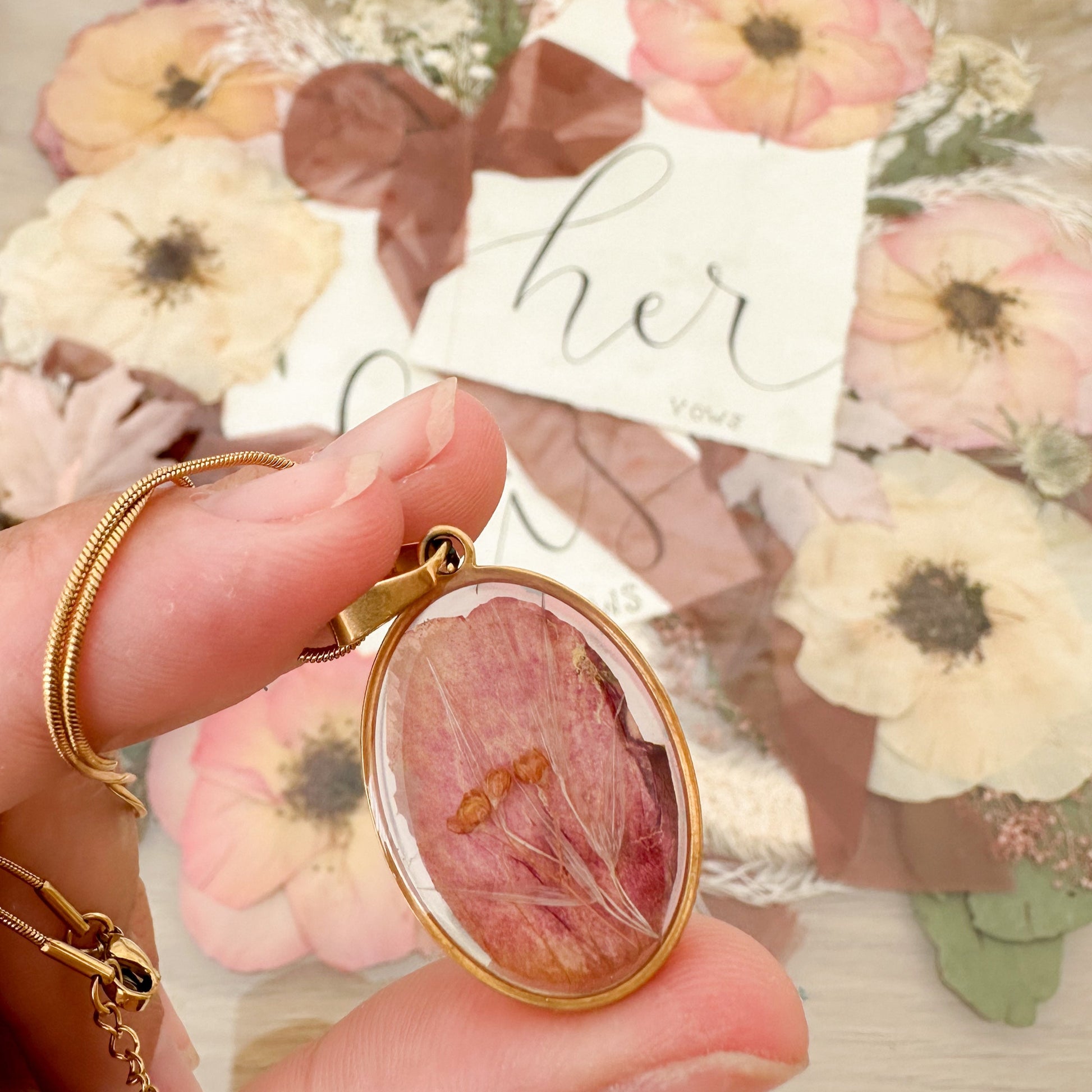 Cada peça é feita à mão, encapsulando flores naturais prensadas em resina, para criar peças únicas que carregam a essência do vosso grande dia.